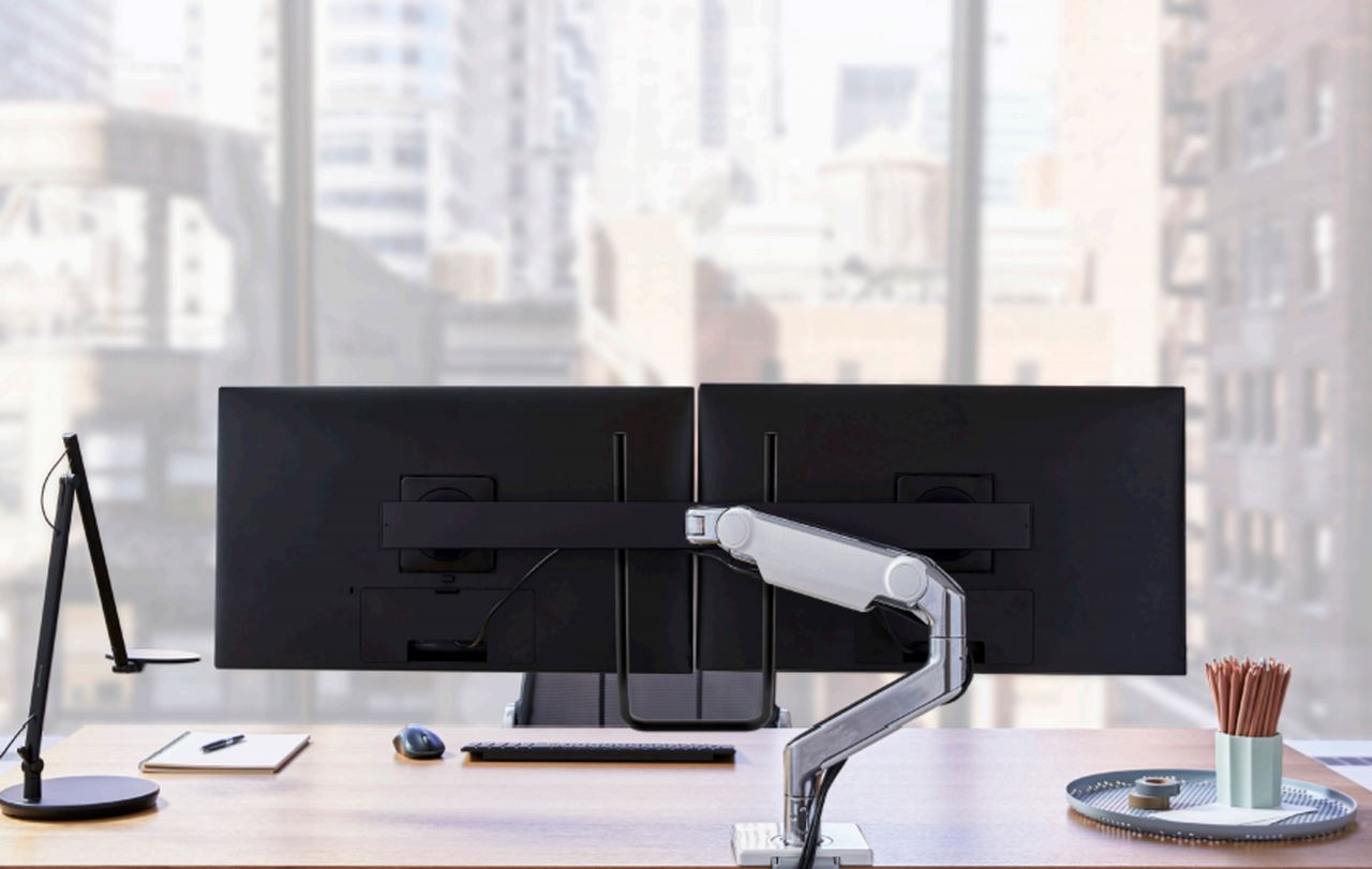 - Built-in fine-tune adjustment ensures that double monitors line up perfectly